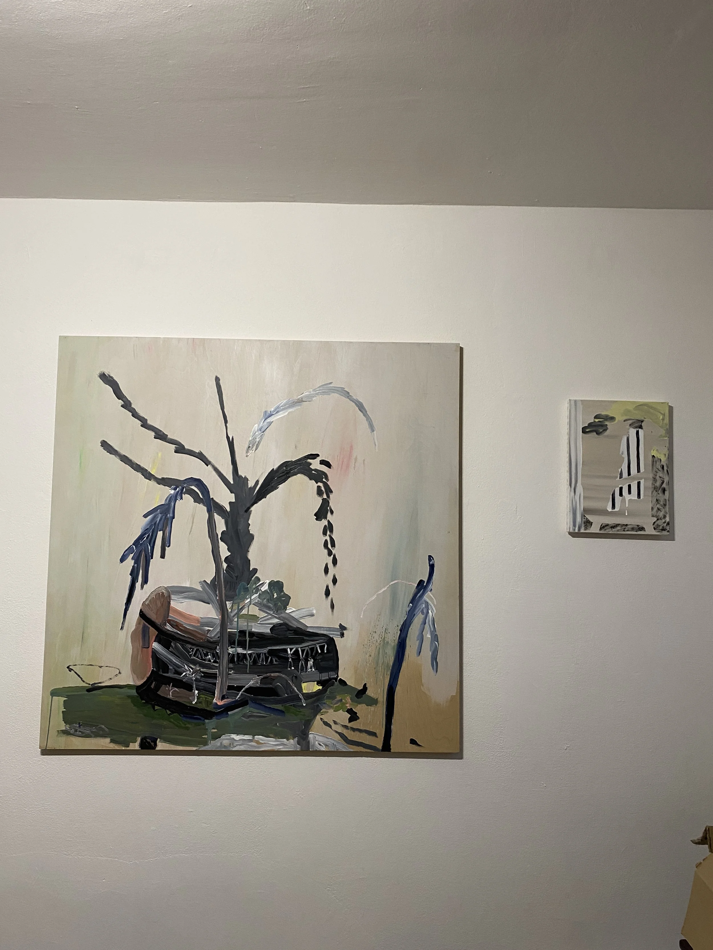 At first glance, her work may seem like a play on the concepts of abstraction, but closer examination reveals how she uses the language of painting to explore personal narratives. She has chosen to construct compositions as a tool for recovery, creating connections between memories and giving them meaning through their visual realignment on canvas. Each composition tells a new story, and the viewer is invited to do the same, filling in the missing information by imagining what the objects or shapes might be and how they relate to each other. In this way, the paintings serve as vehicles for the viewer's memory and storytelling.